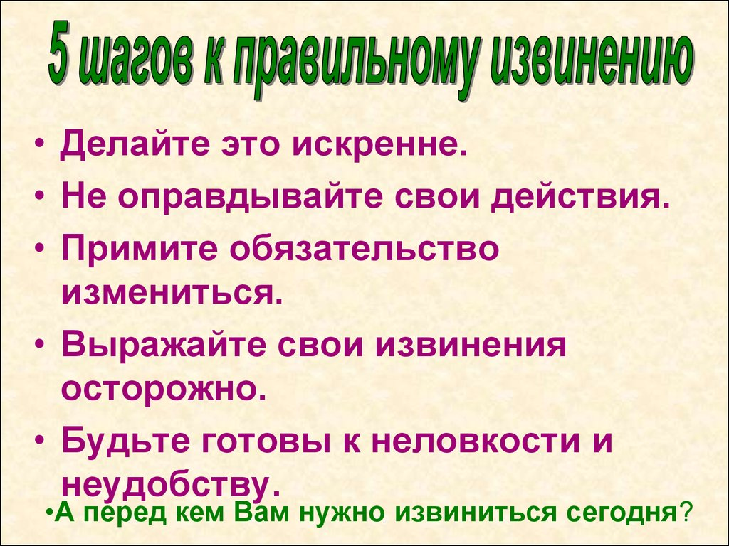 ΠΠ΅Ρ Π½ΠΈΡΠ΅Π³ΠΎ ΡΠ½ΠΈΠ·ΠΈΡΠ΅Π»ΡΠ½ΠΎ Π² ΡΠΎΠΌ, ΡΡΠΎΠ±Ρ ΠΏΠΎΠΏΡΠΎΡΠΈΡΡ ΠΏΡΠΎΡΠ΅Π½ΠΈΡ ΠΈ Π·Π°Π³Π»Π°Π΄ΠΈΡΡ ΡΠ²ΠΎΡ Π²ΠΈΠ½Ρ. ΠΡΠ΄ΠΈ Ρ Π³ΠΎΡΠΎΠ²Π½ΠΎΡΡΡΡ ΠΏΡΠΈΠ½ΠΈΠΌΠ°ΡΡ ΠΈΠ·Π²ΠΈΠ½Π΅Π½ΠΈΡ, Π° Π»ΠΈΡΠ½ΠΎΡΡΡ ΡΡΠ°Π½ΠΎΠ²ΠΈΡΡΡ Π»ΡΡΡΠ΅. ΠΠ΅ Π½Π°Π΄ΠΎ Π΄Π΅ΡΠΆΠ°ΡΡ Π² ΡΠ΅Π±Π΅ ΡΡΠΈ Π΄Π²Π° ΡΡΠ²ΡΡΠ²Π°. ΠΠ½ΠΈ ΡΠΊΠΎΠ²ΡΠ²Π°ΡΡ ΠΈΠ½Π΄ΠΈΠ²ΠΈΠ΄ΡΠ°Π»ΡΠ½ΠΎΡΡΡ ΠΈ ΠΌΠ΅ΡΠ°ΡΡ ΡΠ°Π·Π²ΠΈΠ²Π°ΡΡΡΡ, ΡΠ°Π·ΡΡΡΠ°Ρ ΡΡ ΡΠ°ΡΡΡ Π»ΠΈΡΠ½ΠΎΡΡΠΈ, ΠΊΠΎΡΠΎΡΠ°Ρ Π΄Π΅Π»Π°Π΅Ρ ΡΠ΅Π»ΠΎΠ²Π΅ΠΊΠ° Π»ΡΡΡΠ΅.
