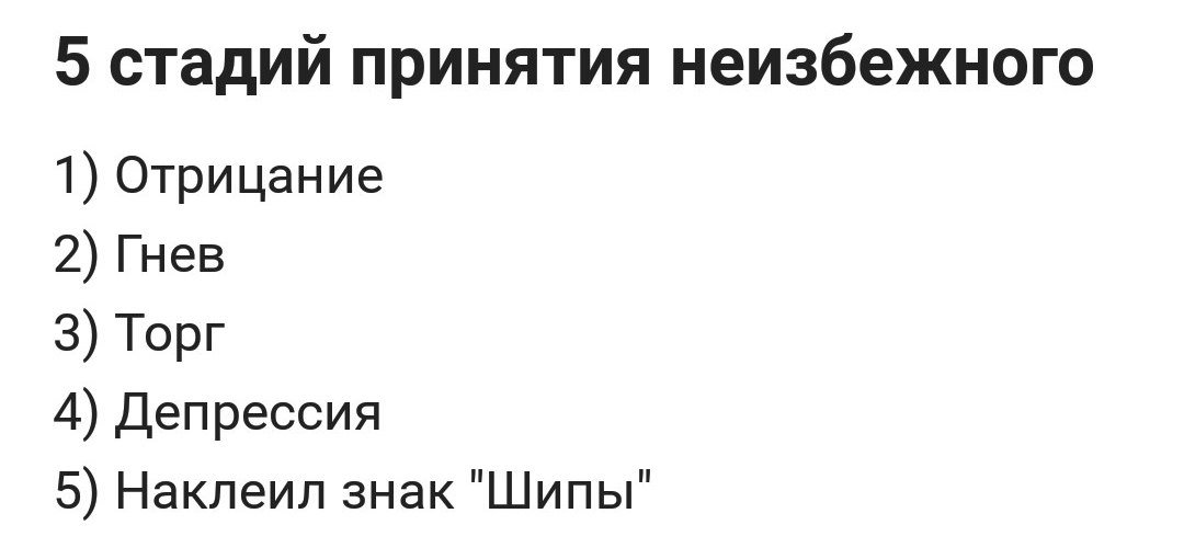 5 стадий принятия проблемы: отрицание, гнев, торг, депрессия, смирение