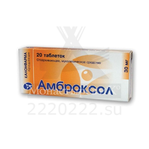 - Амброксол 30 мг, таблетка — Коробка по 100 штук (в полосках фольги по 4 штуки)