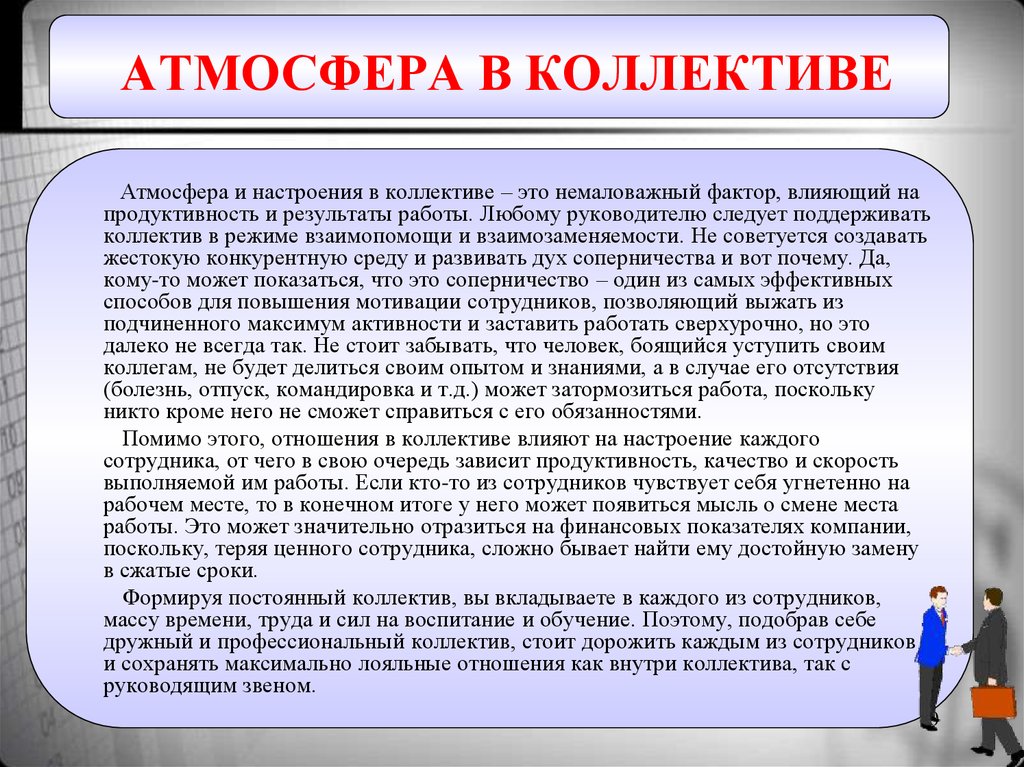 Атмосфера в коллективе организации обычаи нравы ожидания сотрудников: Атмосфера в коллективе организац… ✋ Ответ на вопрос №141749 по предмету Менеджмент