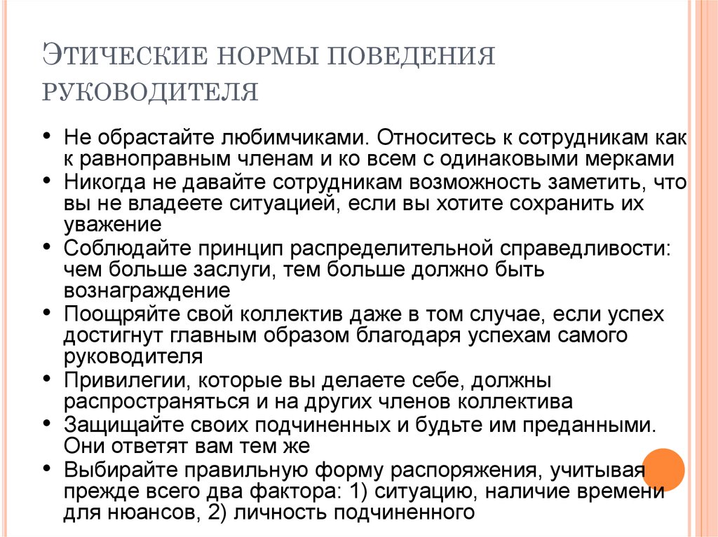 - Он устанавливает набор норм, регулирующих эффективность рабочего места.