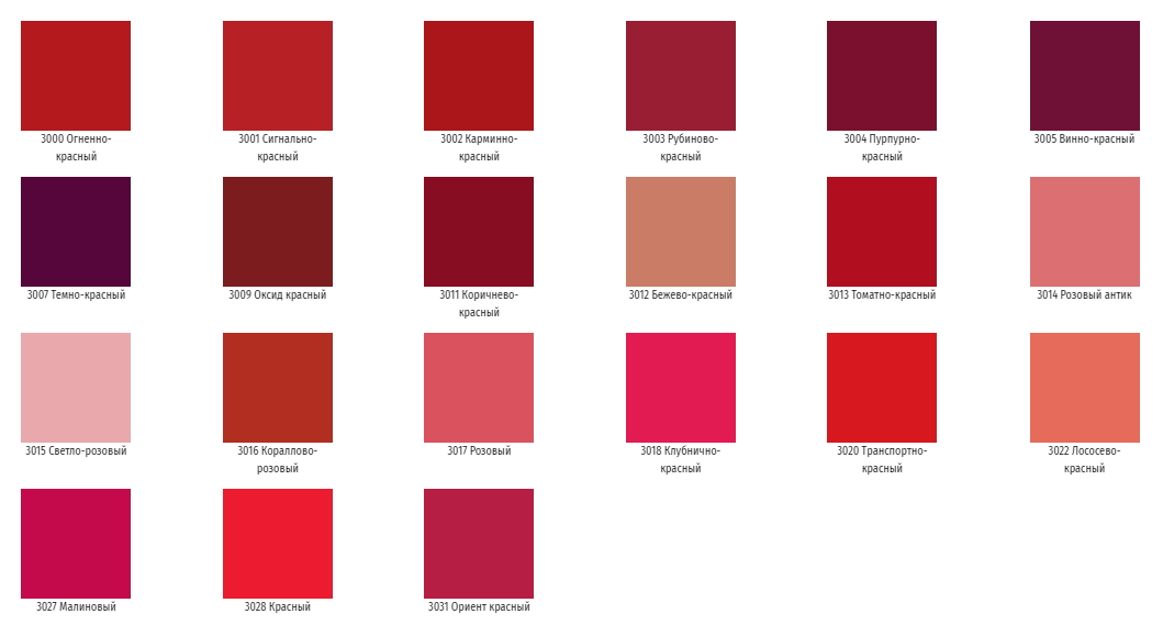 | Кармин | Насыщенный темно-красный с коричневыми нотами |