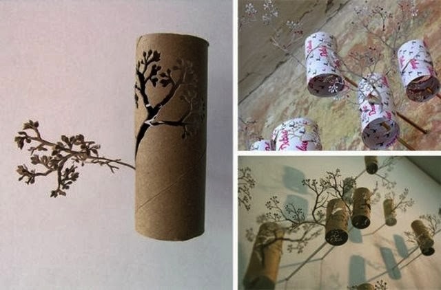 Оригинальные композиции из картонных втулок с фигурными разрезами и сухих веток, станет изысканным украшением любой стены.