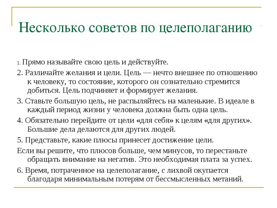 Желаю вам успеха в постановке и достижении ваших целей.