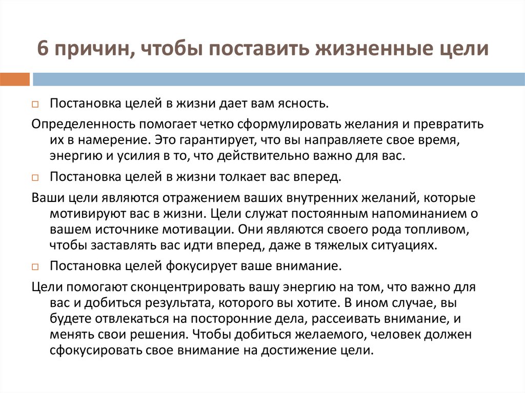 Жизненные цели — наша мишень. Мы сравниваем свой прогресс с этим в разных измерениях нашей жизни.Если у нас нет этих целей и причин, по которым они стоят, мы будем сравнивать нашу жизнь с другими людьми и тем, как они поживают (или насколько хороши их фотографии в Instagram). Вот почему я считаю это руководство важным.