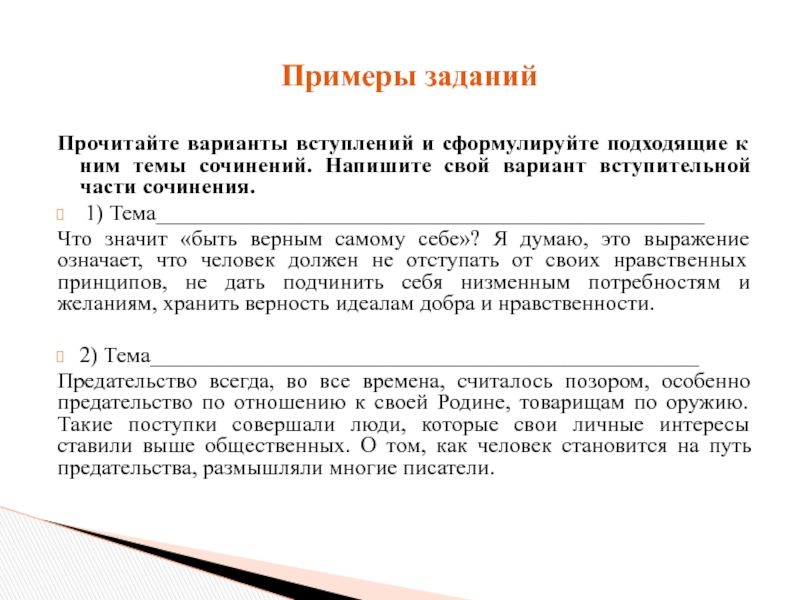 Перед каждым примером из литературы должен быть тезис (ответ на вопрос темы).