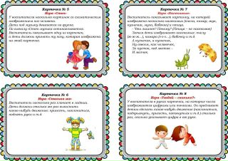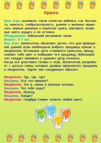 Примечание. В этой игре развивается умение ориентироваться в разных цветах (это важно, поскольку некоторые дети не знают названия цветов, умение слушать, скорость реакции и др.