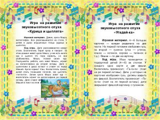 Ход игры: В садик пришла посылка с картинками или новыми игрушками для игр детей. Открыв посылку, дети определяют, что это предметы необходимые для работы людям разных профессий. Но в дороге все они перепутались и необходимо, разобрать предметы по соответствующим профессиям.