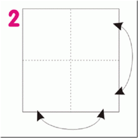 Оригами Гадалка Шаг 2: Сделайте 2 сгиба, одну по горизонтальной оси и одну по вертикальной оси, следуя пунктирным линиям, показанным на фотографии ниже.