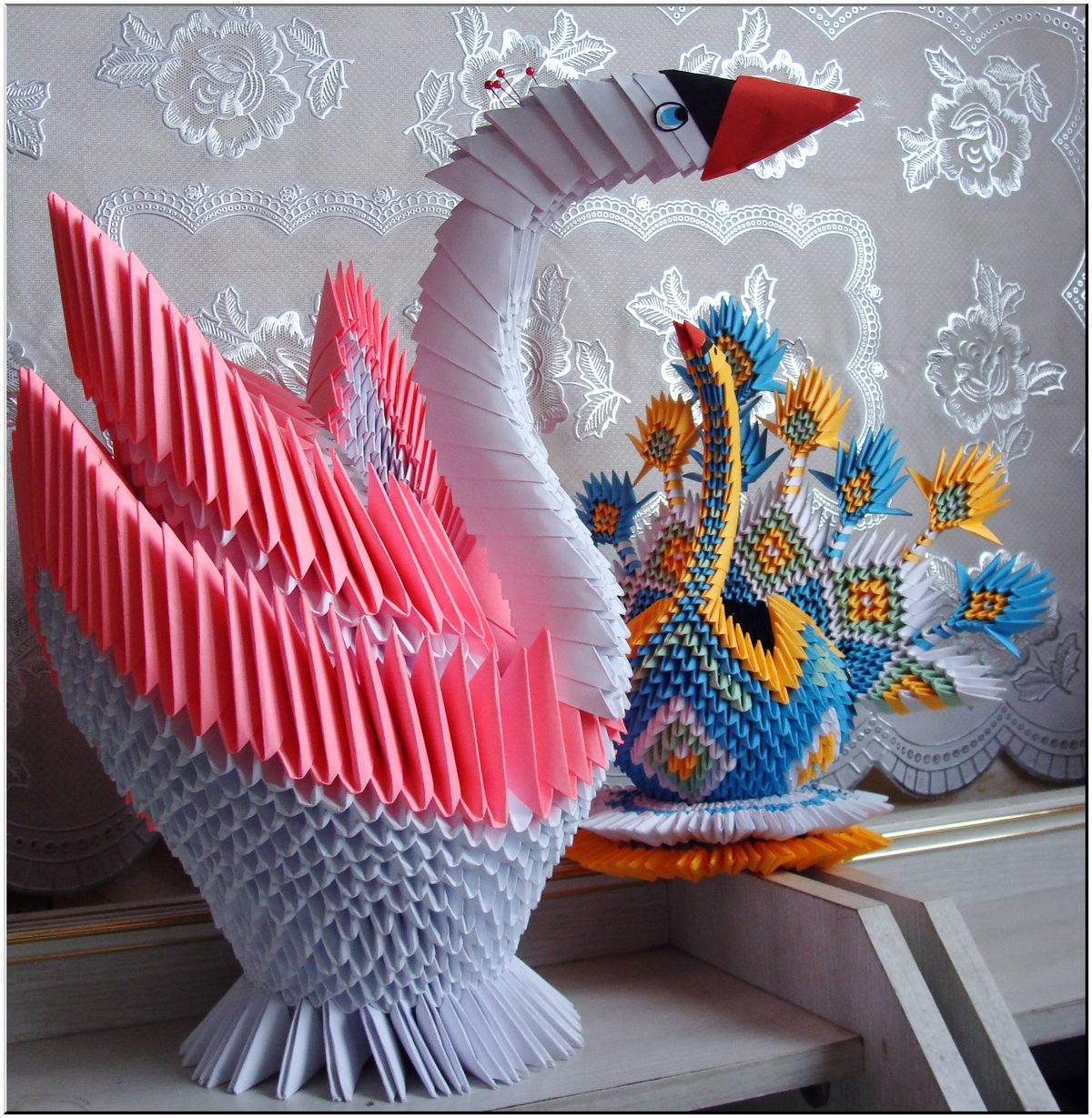 Сегодня я хочу в одной статье собрать все поделки из модульного оригами с птицами. Это будут не только бумажные лебеди, павлины, и жар-птицы (которые вы так любите делать), я хочу показать вам красоту других птиц из модулей – красногрудок, воробушков, голубей, селезней, сов, и многих еще. Хватит ваять монументальных лебедей, похожих на ладьи русских мореплавателей прошлых веков. Давайте посмотрим на более изящные формы поделок птиц из модульного оригами. Разве они не стоят того, чтобы их делать. Тем более схема сборки проще и бумажных модулей надо меньше. Быстрый результат – но с не меньшей красотой. Одни только аисты из модульного оригами чего стоят.