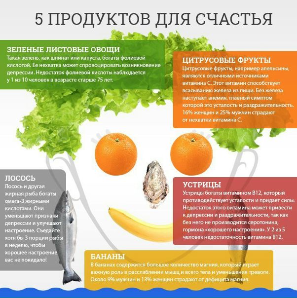 Не путайте с эмоциональным питанием. Пищевая терапия — прекрасный способ избавиться от подавленности. Депрессия связана с многочисленными случаями дефицита витаминов и минералов из-за недоедания, и какой лучший способ вылечить это плохое настроение, чем еда? Пища с высоким содержанием омега-3 жирных кислот, такая как лосось или тунец, борется с тревогой, нарушениями сна и необъяснимым чувством печали.Сложные углеводы, такие как макаронные изделия, постепенно высвобождают сахар в нашем организме, предотвращая его снижение. Темный шоколад выделяет эндорфины, но не коммерческий молочный шоколад, который содержит много сахара и может вызвать падение сахара. Так что ешьте, но с осторожностью относитесь к тому, что вы принимаете.