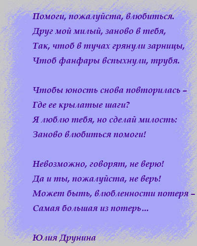 Поэтому теперь есть смысл говорить о том, как усилить любовь, позволить ей освободиться от скорлупы, которую составлют сомнения, упреки, обиды, равнодушие, непонимание и прочие негативные моменты.