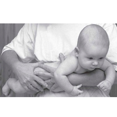* одна рука придерживает младенца за спинку, на другой руке лежат головка и шейка;