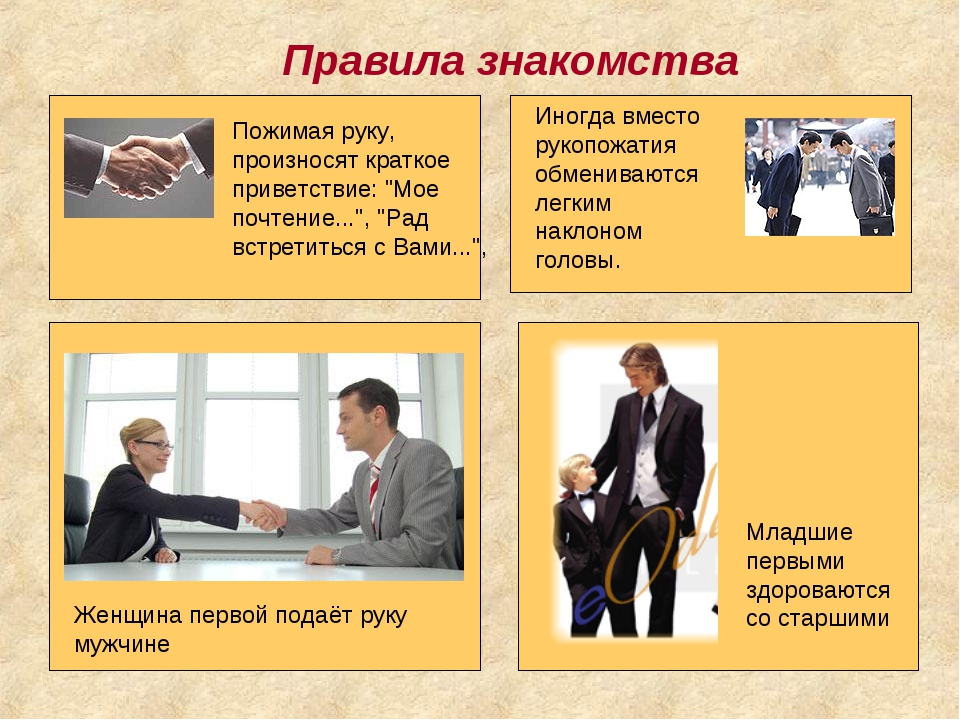 Поэтому, знать, как правильно знакомиться с людьми выше себя по статусу, обязательно нужно! В сегодняшней статье привожу практические указания, что именно надо делать, представляя людей друг другу, и как правильно знакомиться самому. Я не призываю в точности придерживаться данных правил, но большинство из них, если задуматься, просто продиктованы здравым смыслом и могут быть взять на вооружение.