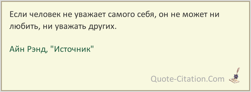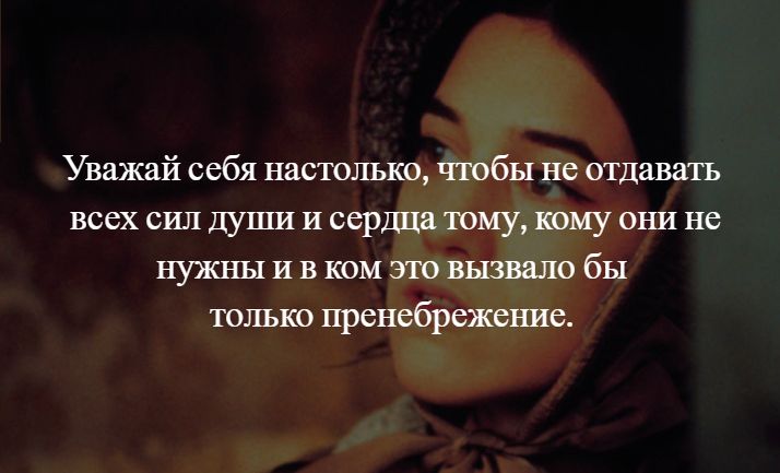 Александр Дюма, в приключенческом романе «Граф Монте-Кристо», утверждал: «Показывай, что уважаешь себя, — и тебя будут уважать». Ты не можешь заставить других уважать, если сам себя не уважаешь. Не общайся с теми, кто не оказывает тебе должного уважения и игнорируй их.
