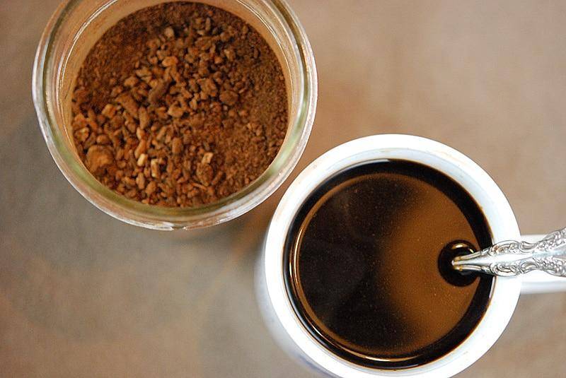 - Растворимый кофе – кто-то считает, что данная разновидность напитка содержит минимум кофеина, по причине низкого содержания натуральных компонентов.