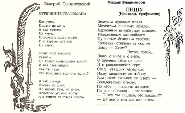 Если художнику свойственны непрерывная потребность превзойти себя, сделать лучше, написать лучше, по-иному осмыслить те или иные события, характеры, поступки, для того, чтобы реализовать все грани своей личности, всё, что таится в зародыше, запрятано изначально в душе, генах и т. п., способность учиться, по-новому осмысливать жизнь, события, постоянно открывать что-то новое, не отрицать оголтело каких-то вещей, предварительно не изучив их, способность временно мимикрировать, менять взгляды и установки, способность колоссально много работать и изучать необходимый материал с разных сторон, то графоману до этих эмпирей, простите за грубость, — до лампочки.