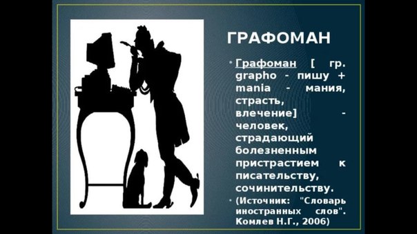 ГРАФОМАНИЯ — пристрастие к писательству у лица, лишенного литературных способностей.