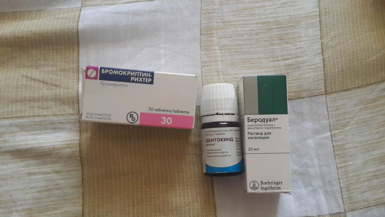 Бромокриптин является производным алкалоидов спорыньи. Его действие заключается в резком уменьшении секреции пролактина гипофизом за счет взаимодействия с рецепторами центральных органов эндокринной системы. Бромокриптин применяют для подавления нормальной лактации в течение двух недель по 1 таблетке (2,5 мг) 2 раза в сутки. Лечение препаратом часто сопровождается тошнотой, рвотой, головокружением, утомляемостью. Иногда отмечается падение артериального давления при резком изменении позы (ортостатическая гипотензия). Изредка может отмечаться ортостатическая гипотония. Противопоказано применение бромокриптина при тяжелых заболеваниях сердца, тяжелой гипертонической болезни, повышенной чувствительности к алкалоидам спорыньи. Необходимо регулярно измерять тонометром давление, особенно в первые дни терапии. Нельзя принимать бромокриптин и другие препараты спорыньи одновременно.
