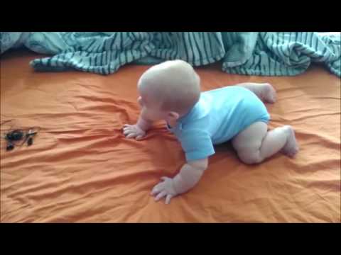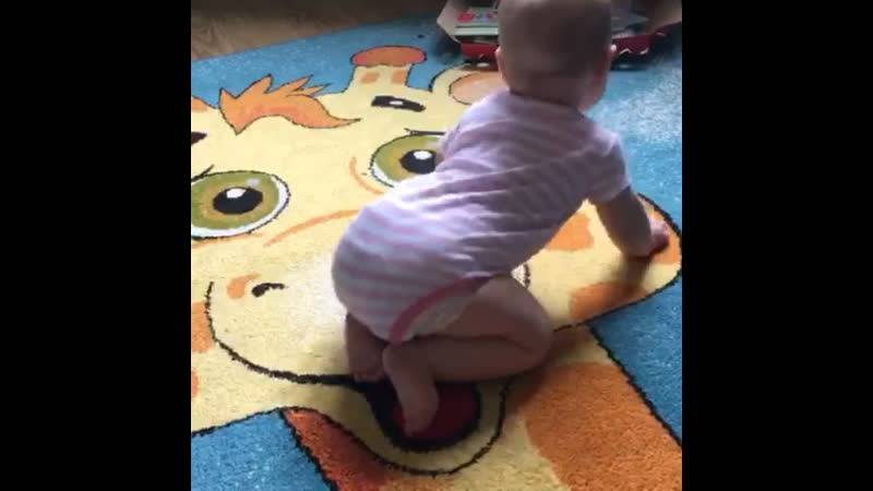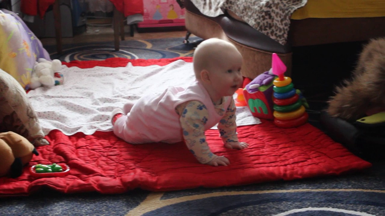 К восьми-девяти месяцам малыши передвигаются на четвереньках и готовятся ползать! Помогите ребенку подняться на четвереньки из положения сидя, чтобы у него было больше возможностей начать ползать.