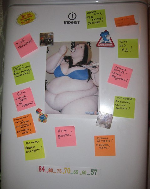 Решив похудеть, определитесь, для кого вы это делаете: для себя или для окружающих. Если вы хотите только удивить друзей, это зря. Сделайте из своих старых фотографий мотиваторы для похудения на холодильник. Смотрите на них каждый раз, когда открываете его. Вам это придаст сил. Поверьте в себя, тогда борьба с соблазнами будет выиграна.