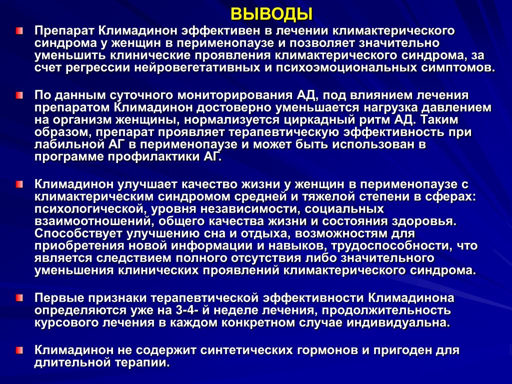 При болезненном протекании климакса помощь врача действительно необходима. Важно не прибегать к самолечению и многочисленным БАД, которые якобы эффективно противодействуют климактерическому синдрому. Такой дилетантский подход может нанести реальный вред здоровью в случае приема, не согласованного с лечащим врачом.