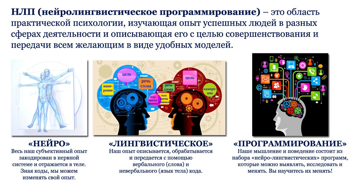 ΠΠΠ β Π½Π΅ΠΉΡΠΎΠ»ΠΈΠ½Π³Π²ΠΈΡΡΠΈΡΠ΅ΡΠΊΠΎΠ΅ ΠΏΡΠΎΠ³ΡΠ°ΠΌΠΌΠΈΡΠΎΠ²Π°Π½ΠΈΠ΅, ΡΠΎ Π΅ΡΡΡ Π·Π°Π΄Π°Π½ΠΈΠ΅ ΡΡΡΠ°Π½ΠΎΠ²ΠΎΠΊ ΠΈ ΡΠ°ΠΊΡΠΈΠΊ ΠΌΠ΅ΠΆΠ΄Ρ Π½Π΅ΠΉΡΠΎΠ½Π½ΡΠΌΠΈ ΡΠ²ΡΠ·ΡΠΌΠΈ Π³ΠΎΠ»ΠΎΠ²Π½ΠΎΠ³ΠΎ ΠΌΠΎΠ·Π³Π° (Π½Π΅ΠΉΡΠΎ-) ΠΈ ΡΠ΅ΡΠ΅Π²ΡΠΌ ΡΠ΅Π½ΡΡΠΎΠΌ (Π»ΠΈΠ½Π³Π²ΠΈΡΡΠΈΡΠ΅ΡΠΊΠΎΠ΅), Π±Π»Π°Π³ΠΎΠ΄Π°ΡΡ ΡΠ΅ΠΌΡ ΡΠ΅Π»ΠΎΠ²Π΅ΠΊΡ ΡΡΠ°Π½ΠΎΠ²ΠΈΡΡΡ Π»Π΅Π³ΠΊΠΎ Π°Π½Π°Π»ΠΈΠ·ΠΈΡΠΎΠ²Π°ΡΡ ΠΈ ΠΎΡΠ΅Π½ΠΈΠ²Π°ΡΡ ΡΠΎΠ±ΡΡΠ²Π΅Π½Π½ΡΠ΅ ΠΌΡΡΠ»ΠΈ ΠΈ ΠΆΠ΅Π»Π°Π½ΠΈΡ, Π° ΡΠ°ΠΊΠΆΠ΅ Π²Π»ΠΈΡΡΡ Π½Π° ΠΌΡΡΠ»ΠΈΡΠ΅Π»ΡΠ½ΡΠΉ ΠΏΡΠΎΡΠ΅ΡΡ ΠΈ ΠΏΠΎΠ²Π΅Π΄Π΅Π½ΠΈΠ΅ Π΄ΡΡΠ³ΠΈΡ