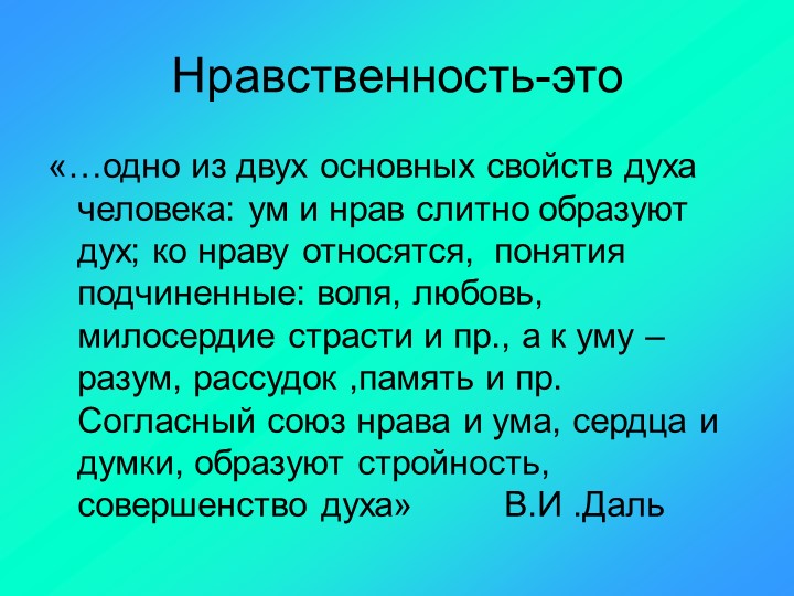 Нравственность – внутренние, духовные качества, которыми руководствуется человек, этические нормы; правила поведения, определенные этими качествами.