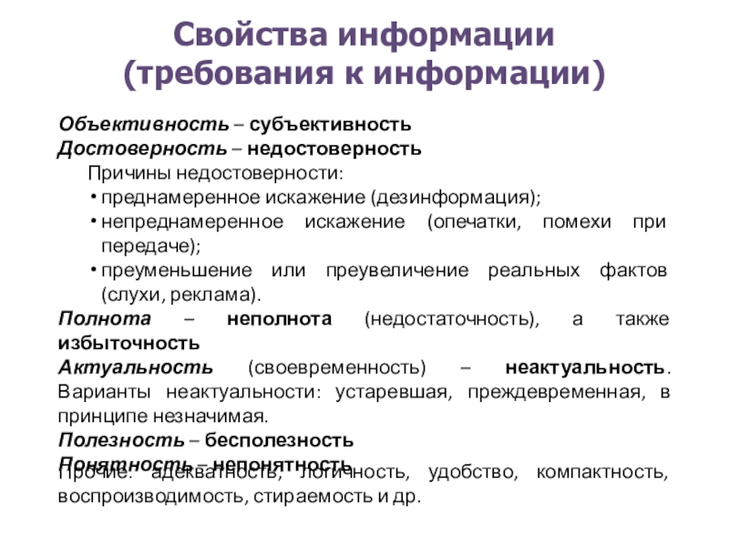 Большинство предоставляемой информации в нашем мире имеют оценочный характер. Это задевает эмоции, это позволяет управлять эмоциями масс, это позволяет вносить подтекст, контекст и т.д. Например, опрос «что вы выберите: новенький, отличный, практичный автомобиль Х или жалкий автомобиль Y?». Рука тянется к первому пункту. Но, если отбросить всё субъективное, то останется автомобиль X и автомобиль Y. Вот к ним и стоит присмотреться. А если под X скрывались Жигули, а под Y – Мерседес? Вы могли стать жертвой манипуляции. Прочитав в новостях «Госдума опять приняла варварский закон», лучше не заметить слов «опять» и «варварский» и ознакомиться с самим законом.