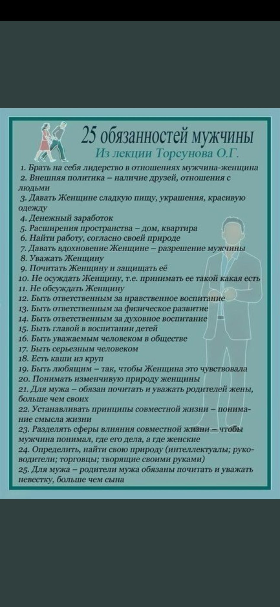 Обязанности мужчин по лекции Торсунова О.