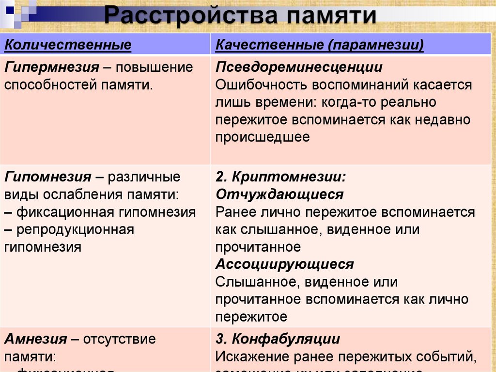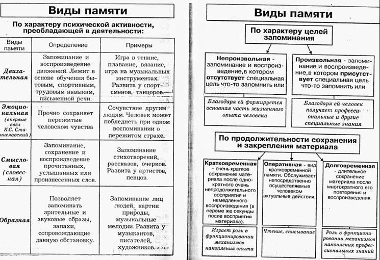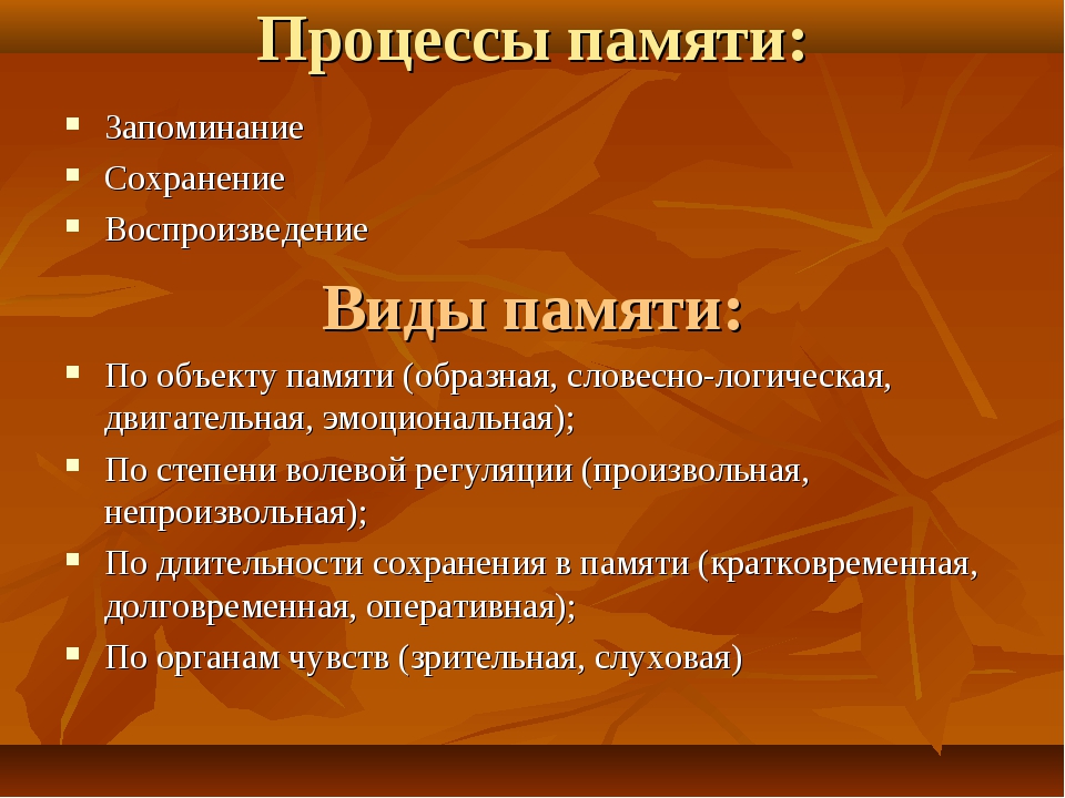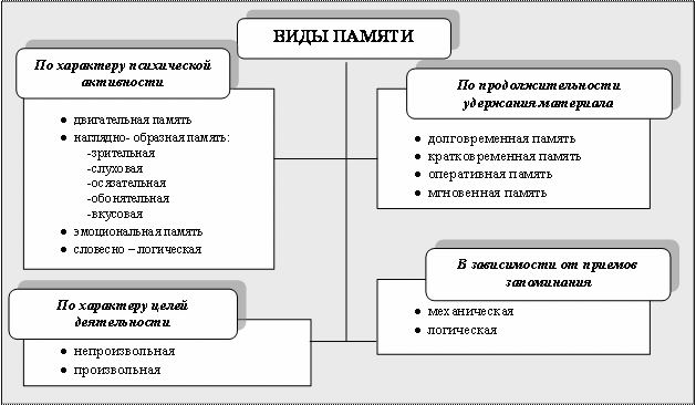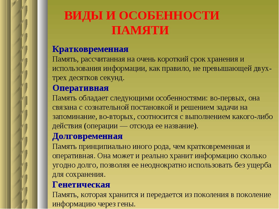 Виды и функции памяти человека
