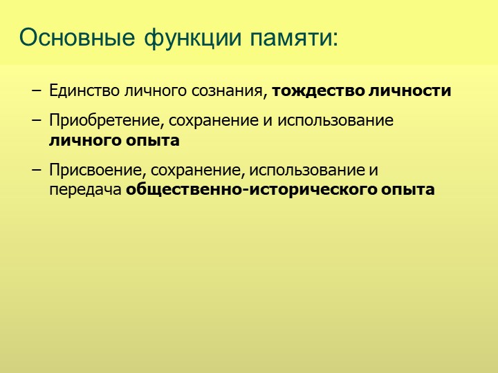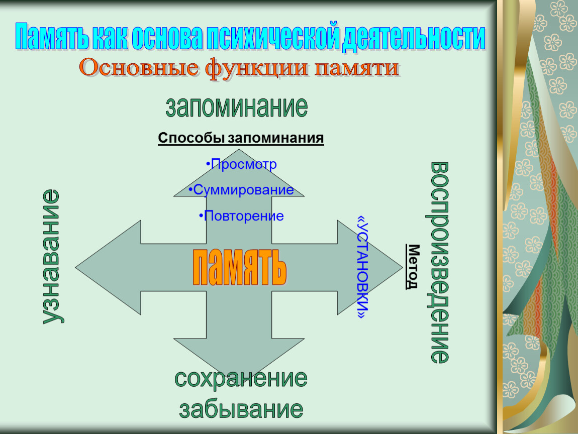 Человеческая память выполняет следующие функции: