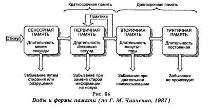 Рисунок 9.4 Продолжительность памяти. Память можно охарактеризовать с точки зрения стадий — промежутка времени, в течение которого информация остается доступной для нас.Сенсорная память