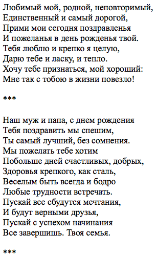 Наш родной, хороший, чистый, наш мужчина обаятельный, подарю тебе любовь и уважение. Пусть по щучьему велению все желания твои сбудутся. Желаю тебе, чтобы ты был здоров, успешен и влюблен, пусть даже и не в меня. Счастья тебе!