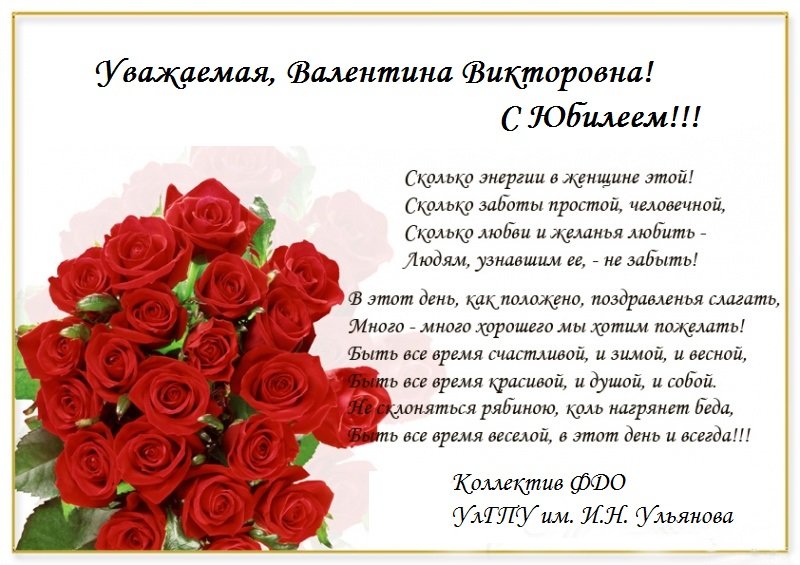 «Дорогой (имя), это здорово, что сегодня мы отмечаем твой юбилей! Мы гордимся тобой, потому что ты добрый и добрый, ласковый, отзывчивый и заботливый. Сегодня тебе 65 лет. Этот возраст добавляет тебе еще больше. радость в глазах.Вы стали еще красивее. Желаем, чтобы в вашей жизни всегда было много праздников, посвященных только вам. С юбилеем! «