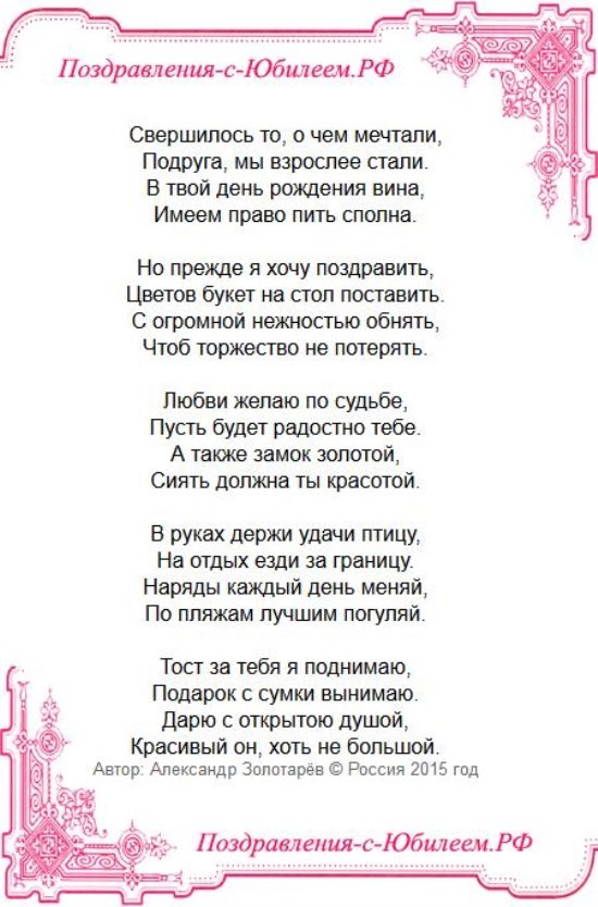 Подругу в юбилей