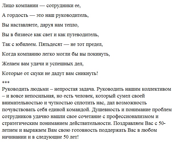 Поздравления с юбилеем 50 лет коллеге в прозе