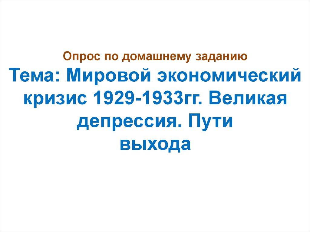 Мировой экономический кризис 1929-1933 г. Великая депрессия. Пути выхода.