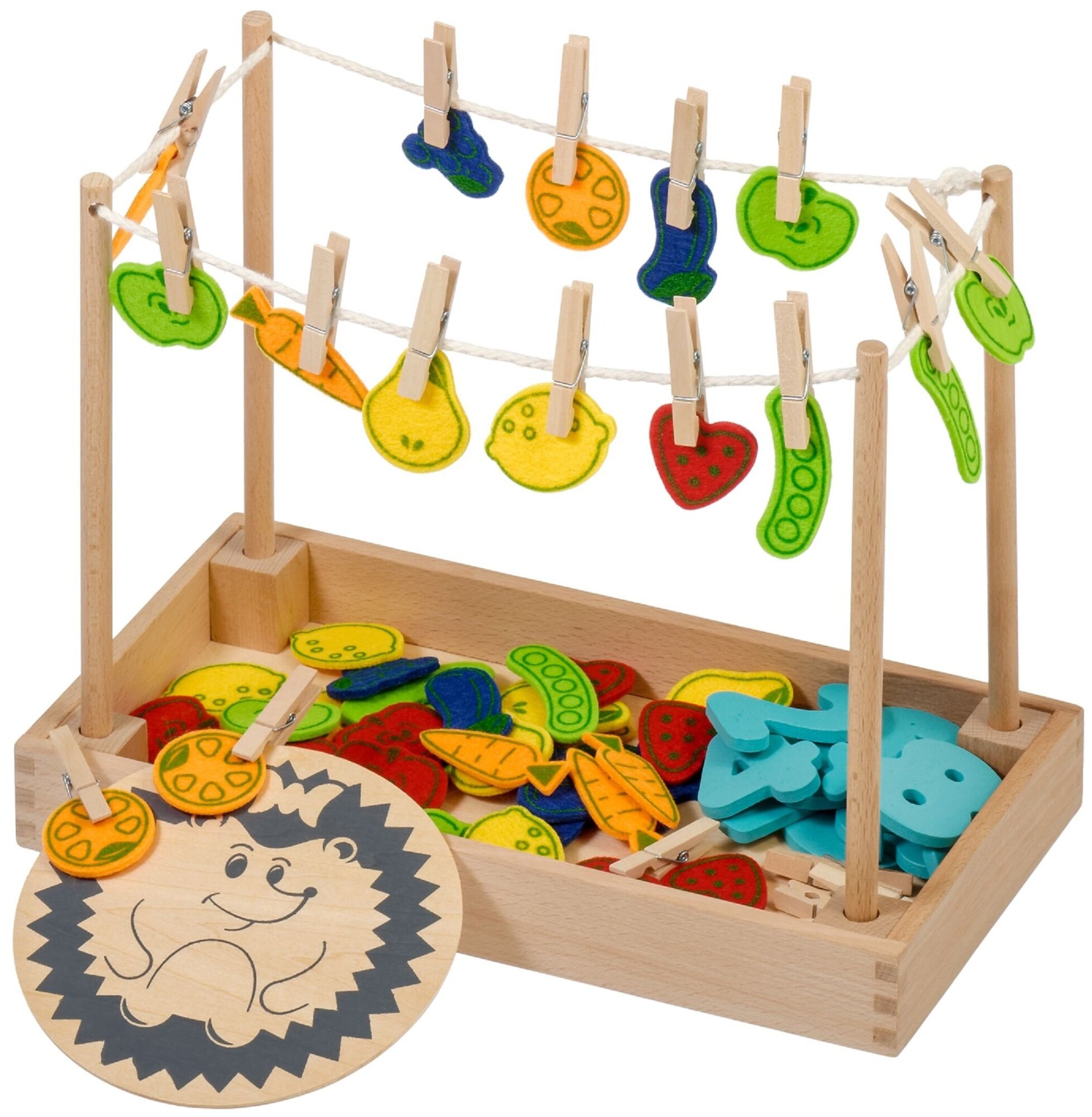 Для игры используют разнообразные бусины и леску. На первых занятиях достаточно вместе с ребенком нанизывать бусинки одного цвета. Затем задания усложняют и работают с диаметром и формой. Скорость усложнения зависит от индивидуальных особенностей ребенка и фантазии родителей.