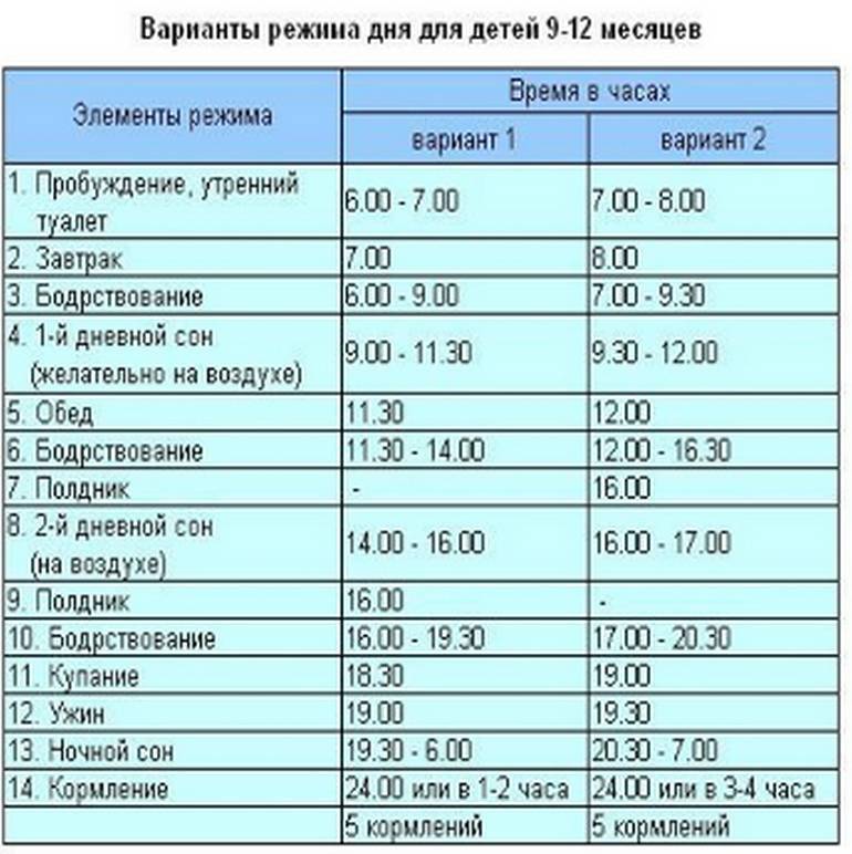 Режим дня ребенка в 9 месяцев – таблица по часам и советы родителям
