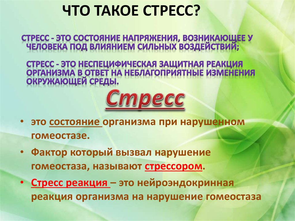Гомеостаз — относительное динамическое постоянство внутренней среды и устойчивость физиологических функций организма. Основным механизмом поддержания гомеостаза является саморегуляция.