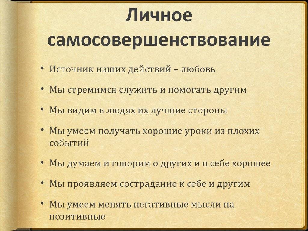 Самосовершенствование включает в себя осознание, новые знания, открытия о том, кто мы и что делает нас уникальными, а также множество озарений и моментов, когда мы ясно видим жизнь и ситуации.Процесс постоянного развития глубоко связывает нас с нашей сущностью.