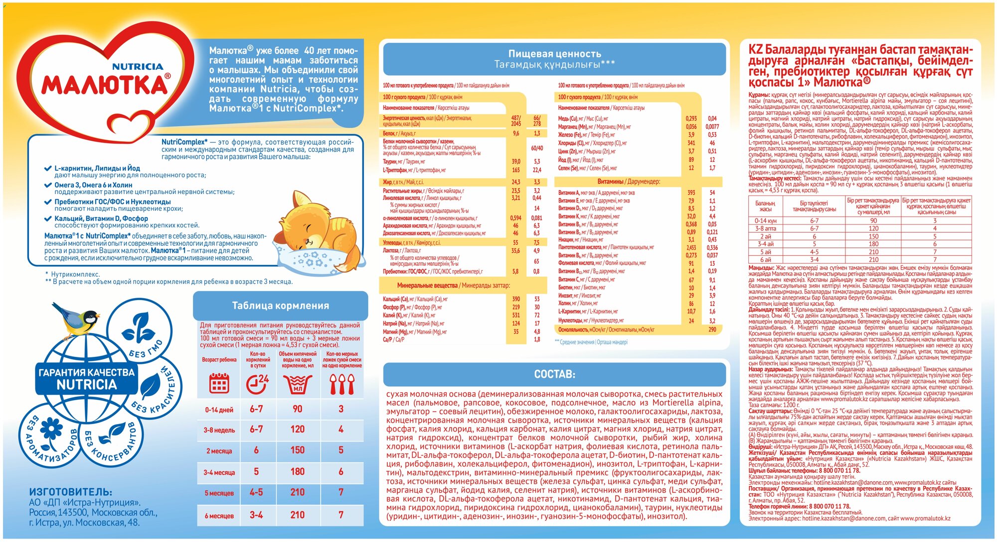 • В качестве углеводных компонентов выступает мальтодекстрин и лактоза.