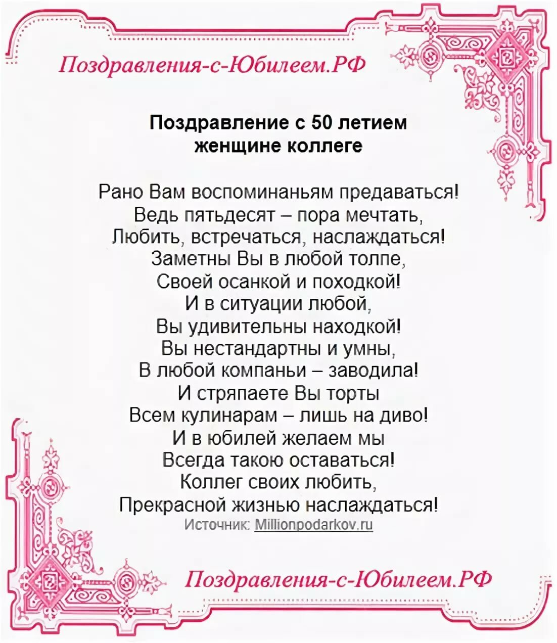 Стихи на юбилей женщине коллеге 50 лет: Красивые стихи с юбилеем 50 лет женщине